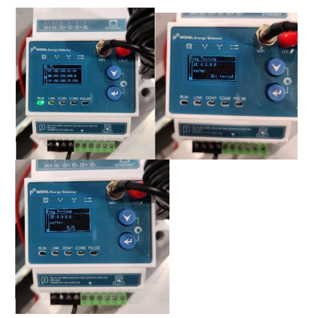 • Press the Down Arrow three more times to reach the Ping Test section. Press Enter to perform a ping test.